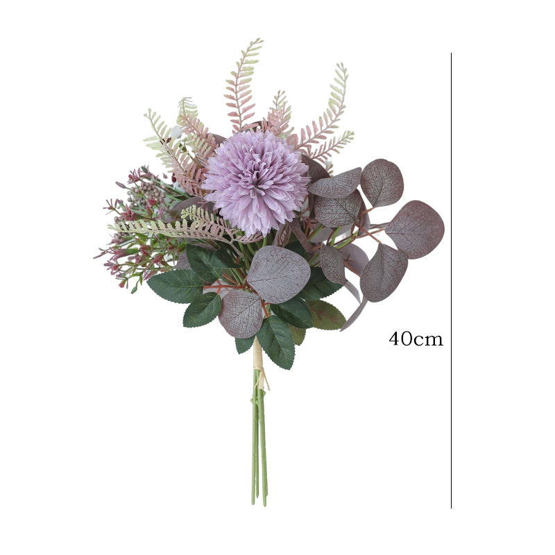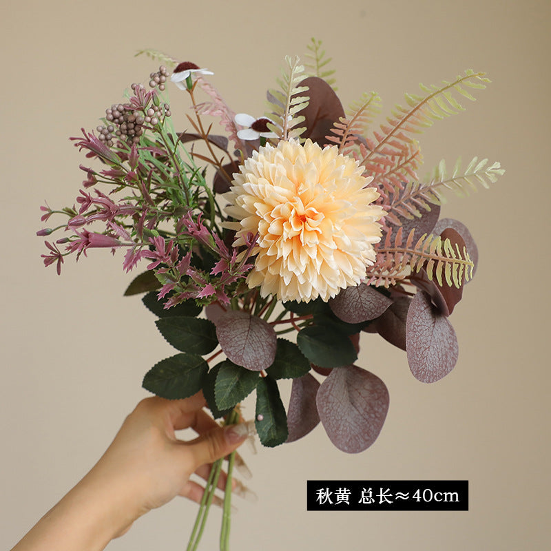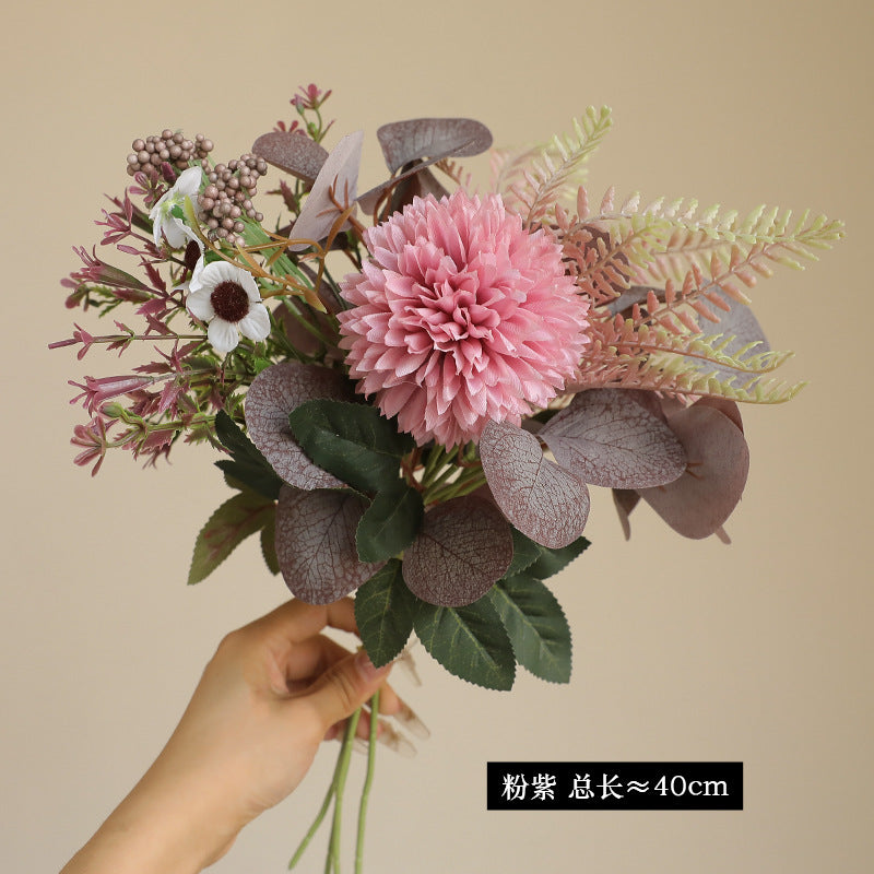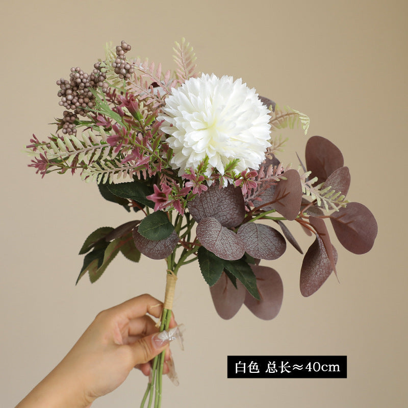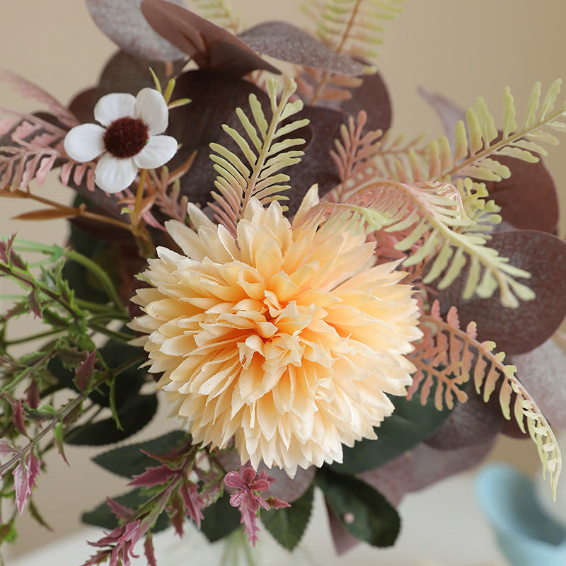 - Lush Silk Eucalyptus & Chrysanthemum Bunch – Crafted with premium multi-layer silk, these artificial blooms (spherical chrysanthemums + eucalyptus) boast vibrant hues and lifelike texture. The layered petals mimic real chrysanthemums’ natural fullness, adding depth and hyper-realistic dimension.