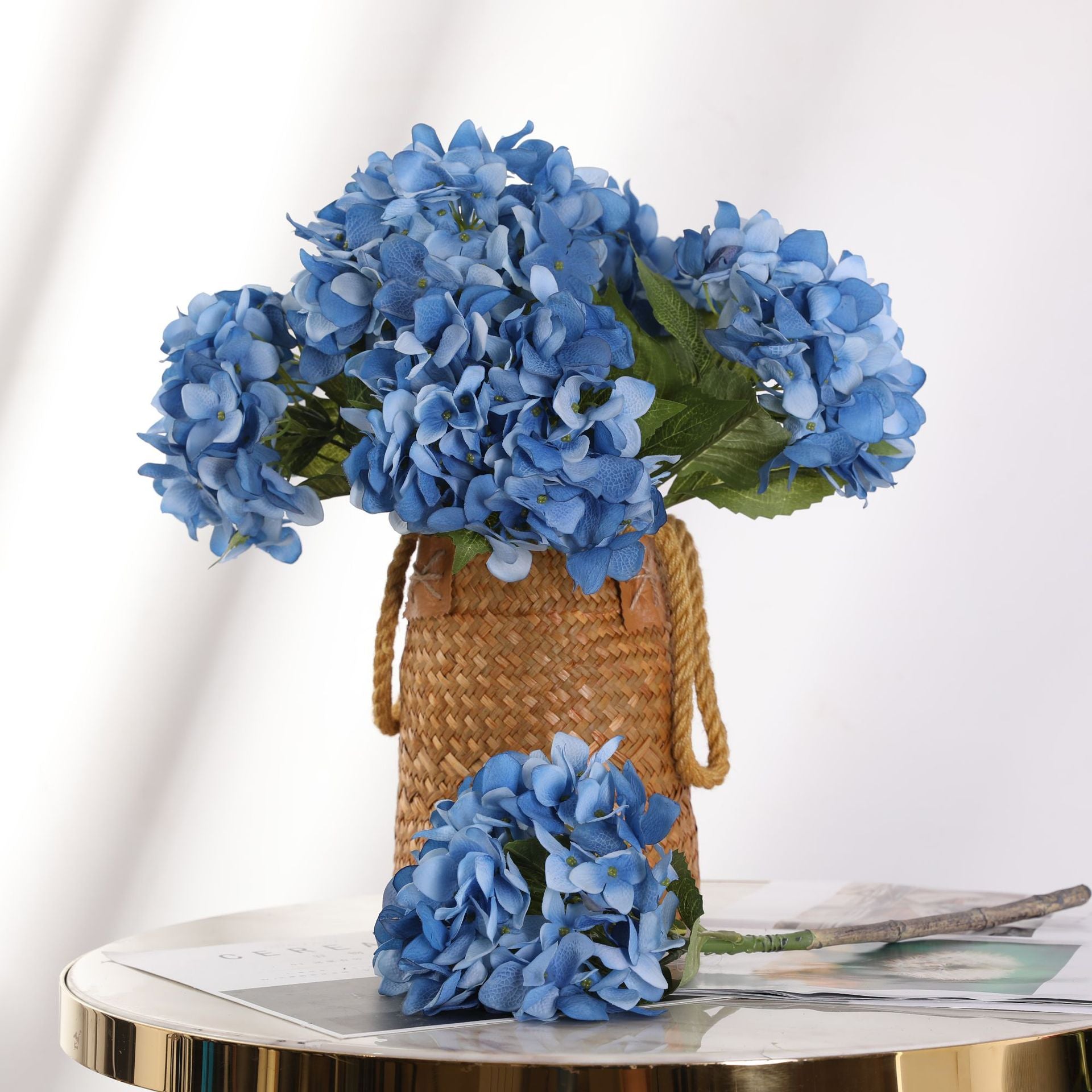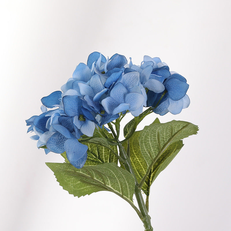 6-8 inch diameter spherical flower heads consist of hundreds of layered petals, showcasing natural gradients from light purple to indigo through gradient dyeing—replicating the classic color transition of French "Endless Summer" hydrangeas. Petal edges are hand-pressed into natural curls, emulating the real form after rainwater saturation.