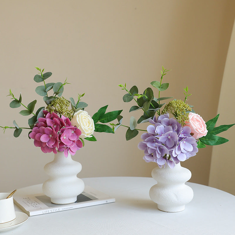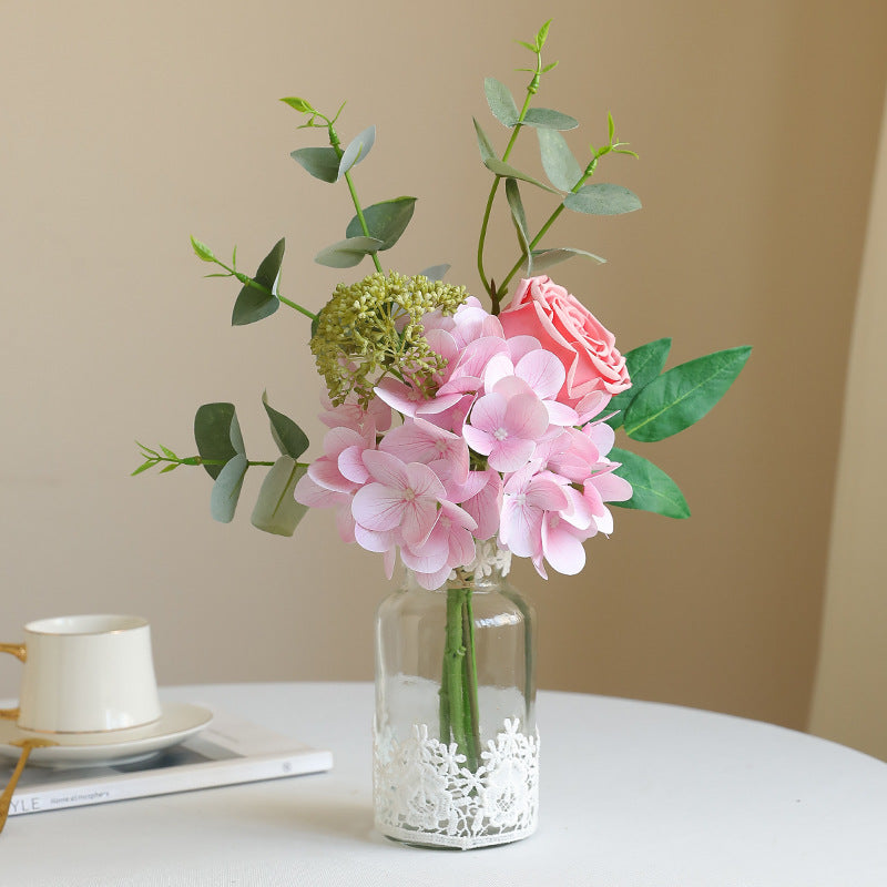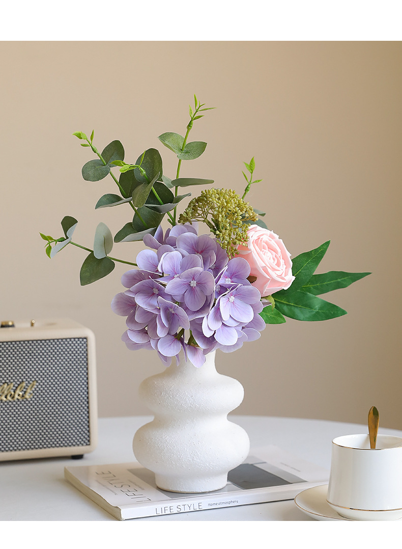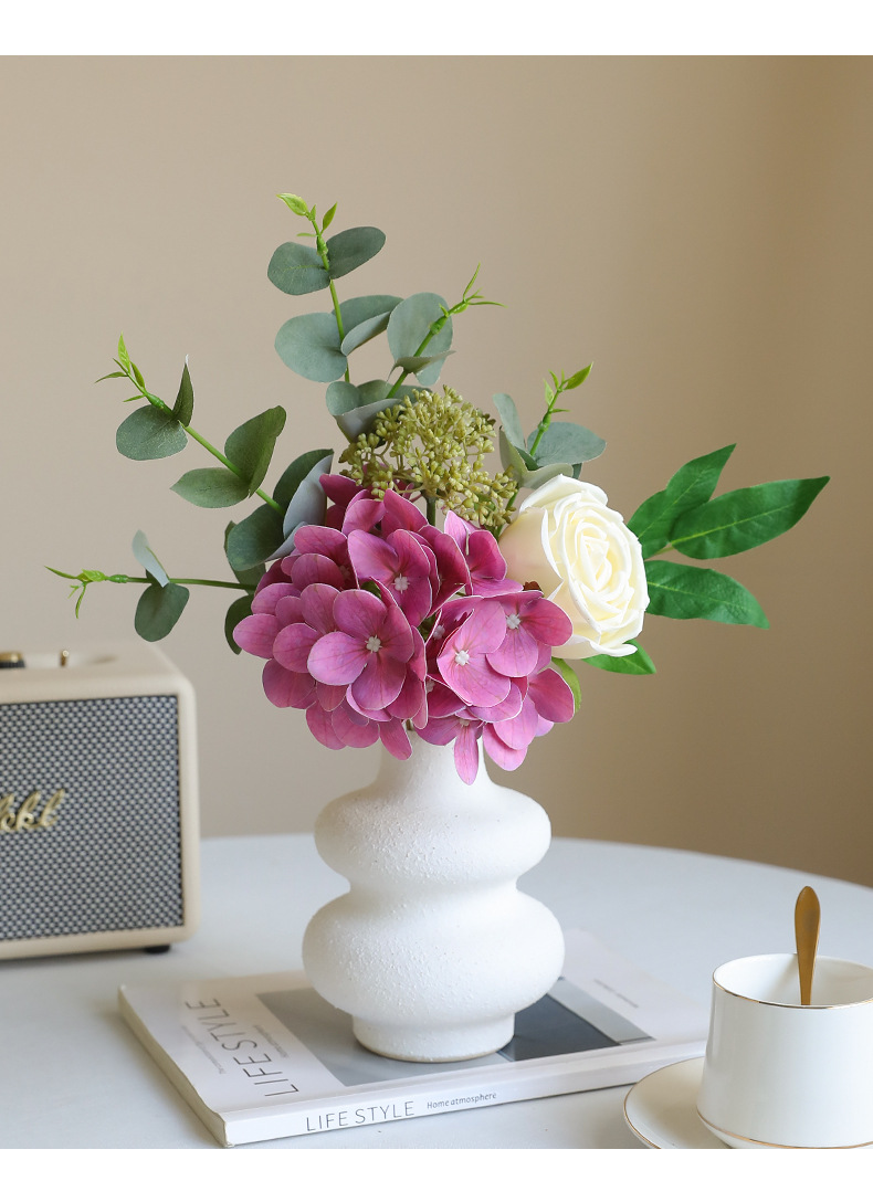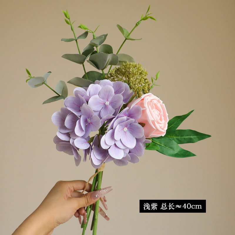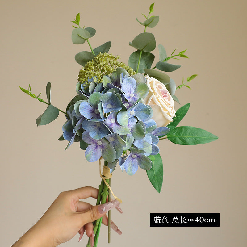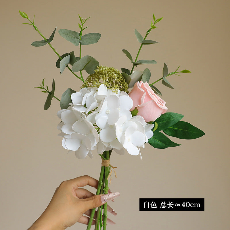 Artificial Hydrangea, Rose & Eucalyptus Bouquet - Simulated Faux Floral Arrangement for Home Decor, Wedding