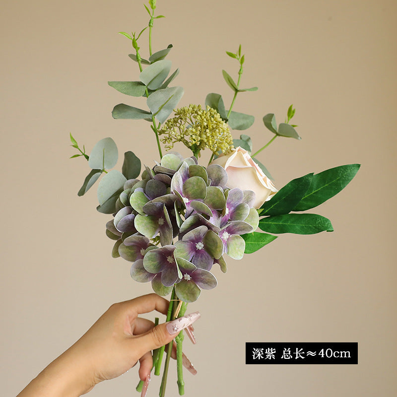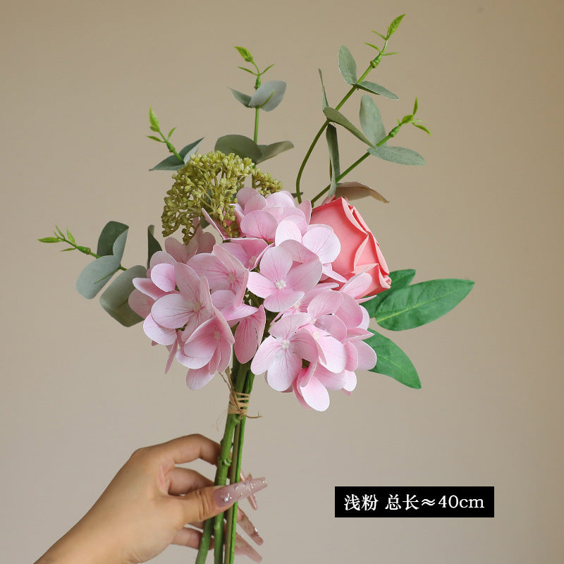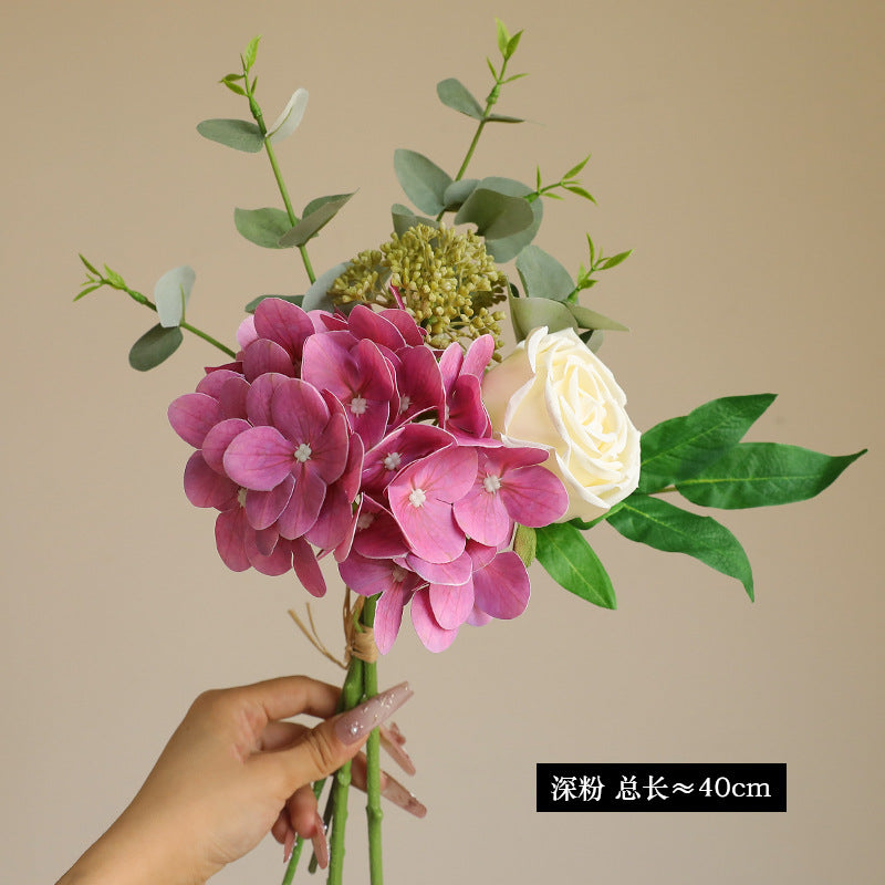 - Premium Silk Hydrangea-Rose-Eucalyptus Bouquet – Crafted from high-quality silk, each petal (hydrangea, rose, eucalyptus) boasts a velvety texture and natural sheen, mirroring real flowers. The high-fidelity design looks lifelike from every angle, blending seamlessly with fresh arrangements.