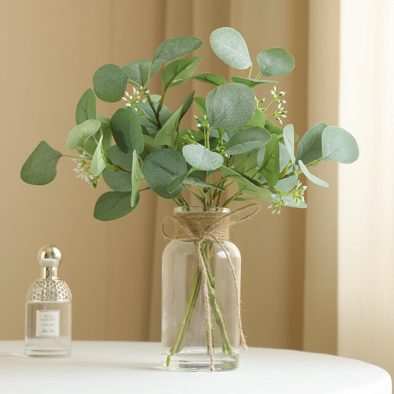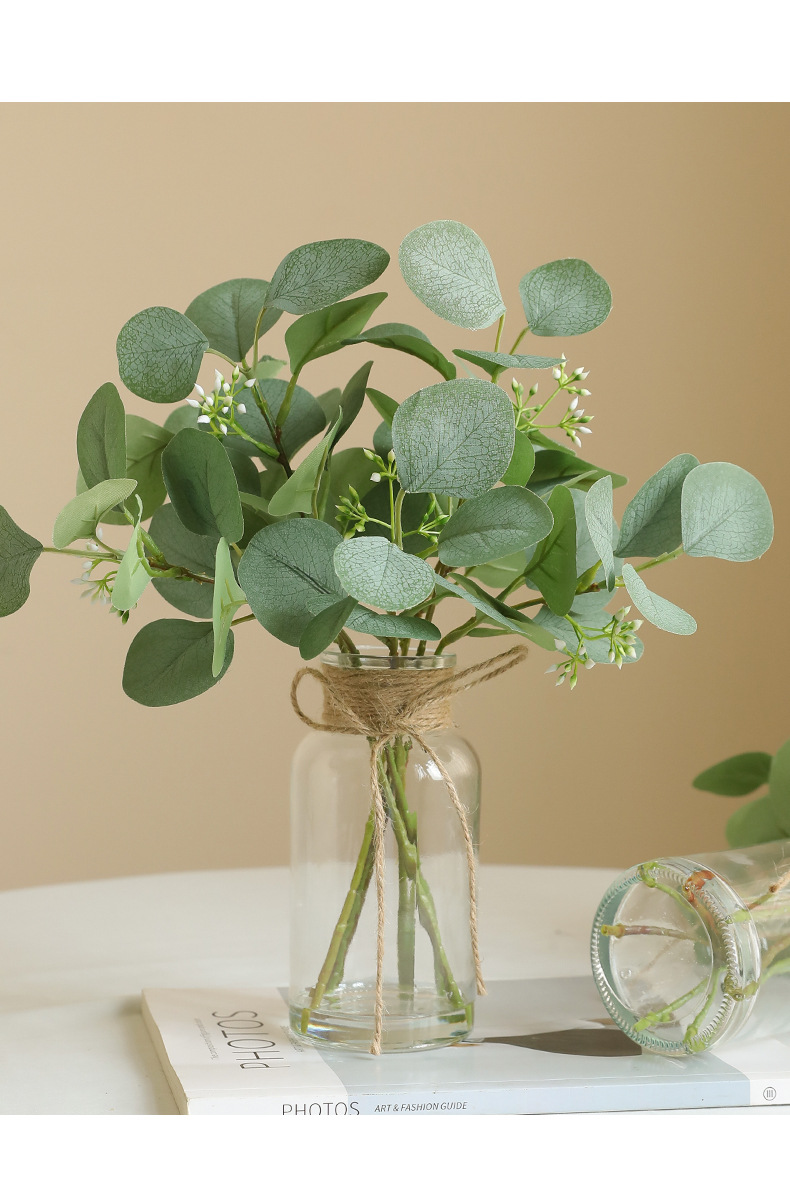 - Botanical Realism with Premium Chiffon CraftCrafted from high-grade chiffon, each eucalyptus leaf features embossed veins and natural morphology, mimicking the delicate texture of real eucalyptus. The lifelike foliage and small fruit accents create a hyper-realistic botanical display that rivals fresh greenery.