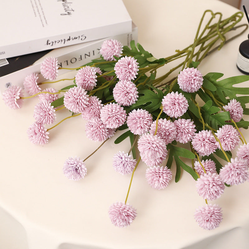 Artificial 5-Dandelion Ball Chrysanthemum - Simulated Faux Blooms for Home Decor, DIY Crafts & Photo Props