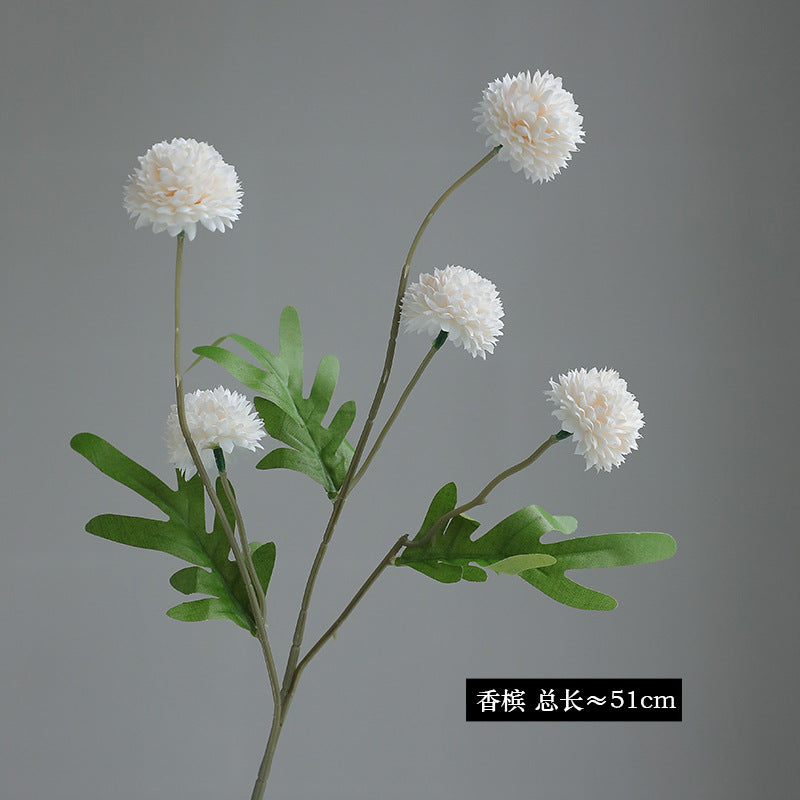 - Lifelike Silk Dandelion Ball Chrysanthemums – 5-stem bouquet crafted from premium silk, with ultra-soft petals and fluffy dandelion seed heads designed to mimic real blooms. Meticulous detailing makes them nearly indistinguishable from fresh chrysanthemums—perfect for realistic artificial flower decor.